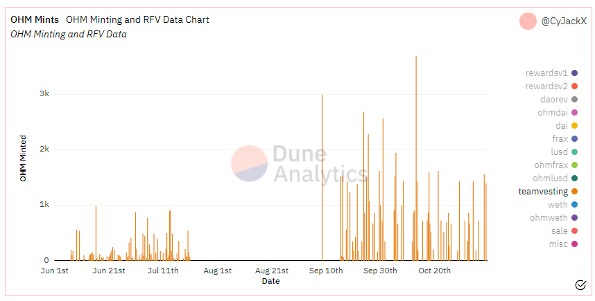 - Team is regularly minting OHM to actively dilute themselves on a regular basis as a result